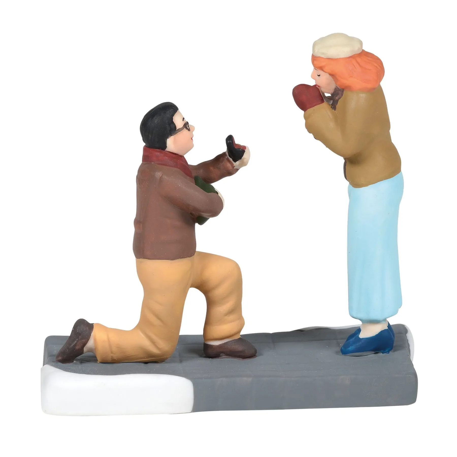 A partner on one knee with ring in hand is the dream of many girls hoping for a holiday engagement. this Village accessory is hand-crafted, hand-painted, Porcelain.