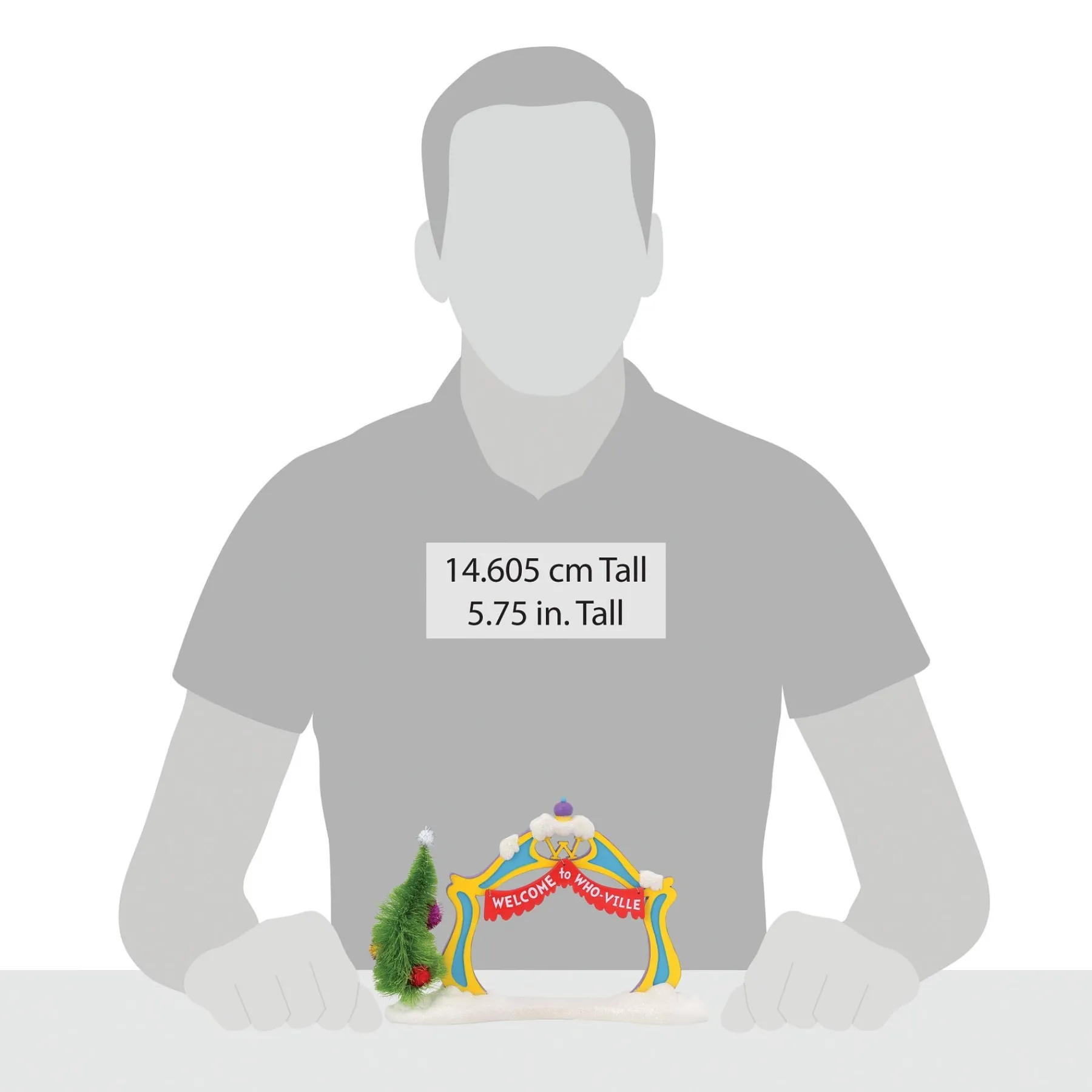 As a very friendly town, the residents of Who-ville put up a welcoming banner on the archway to the town. The resin piece is hand painted in bright Who-ville colors.
