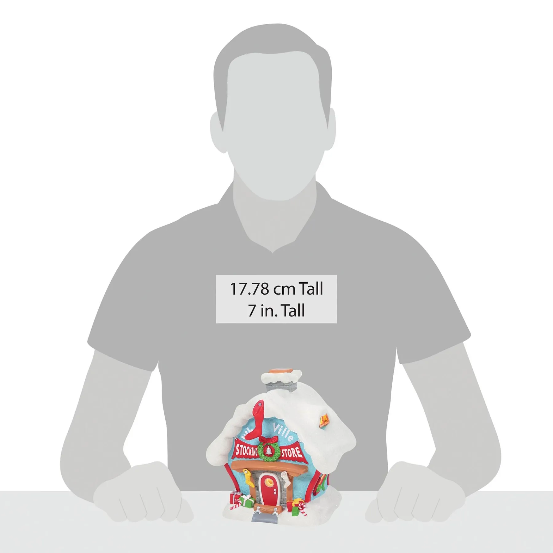 Every good Who in Whoville buys his stockings to hang in front of the fireplace from the Whoville Stocking Store, guaranteed to stretch to fill with lots of good things from Santa or the Grinch!