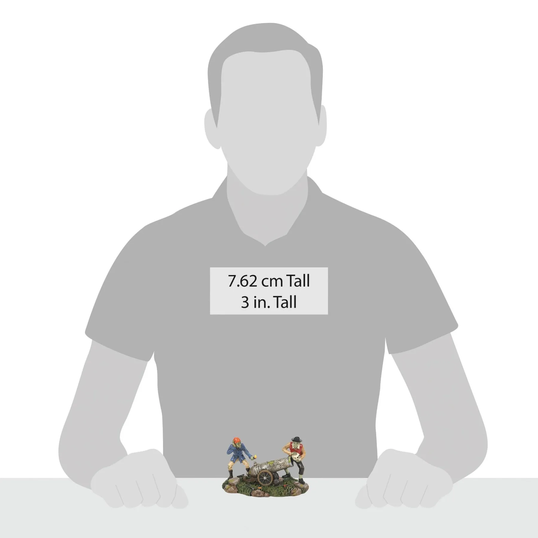 These two unscrupulous pirates are preparing to launch a skull from their ancient iron cannon, such skullduggery behavior is typical for pirates of the Caribbean.