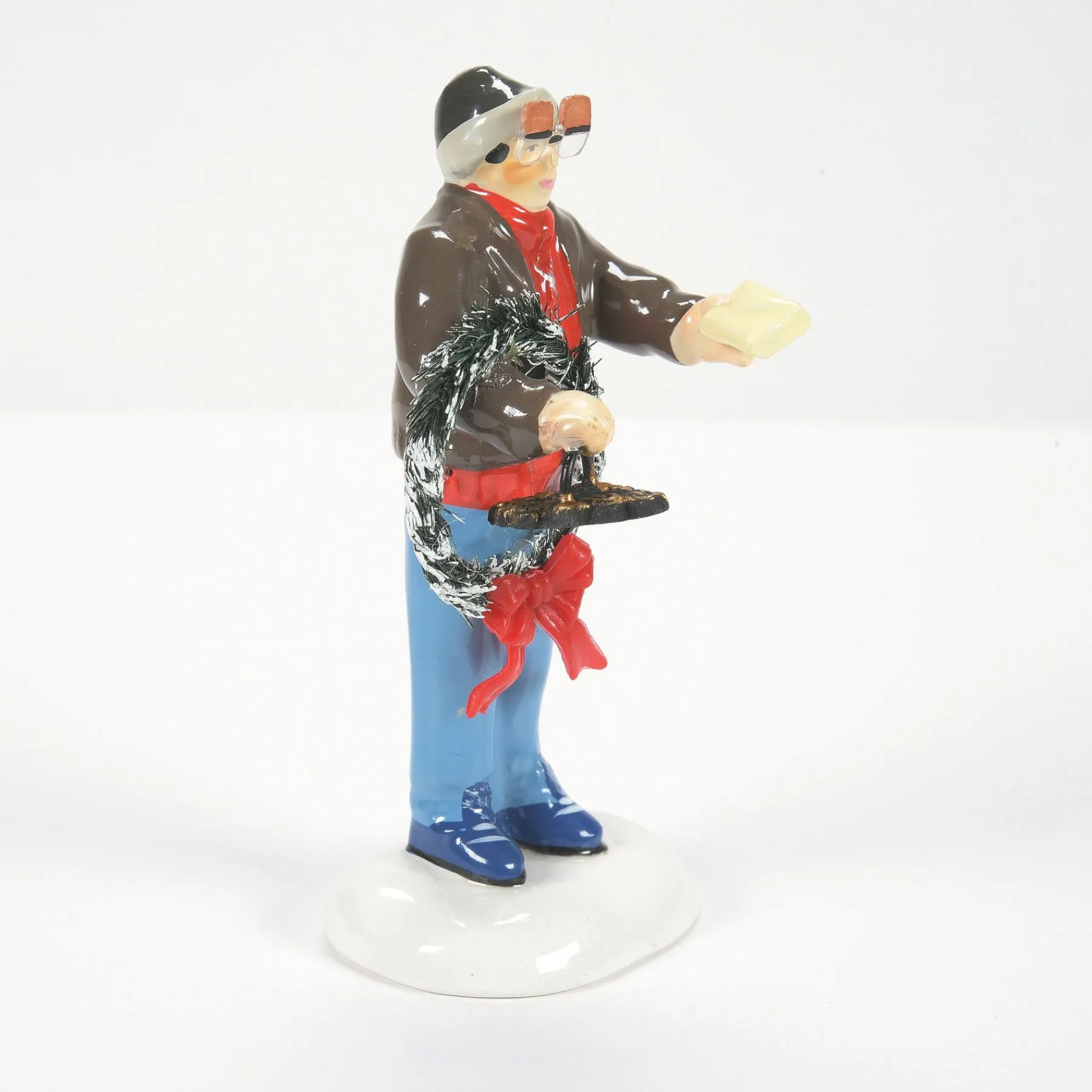 Straight from the movie scene, now holding the door knocker and front wreath, the telegram delivery boy brings the fateful news about Clark’s bonus check.