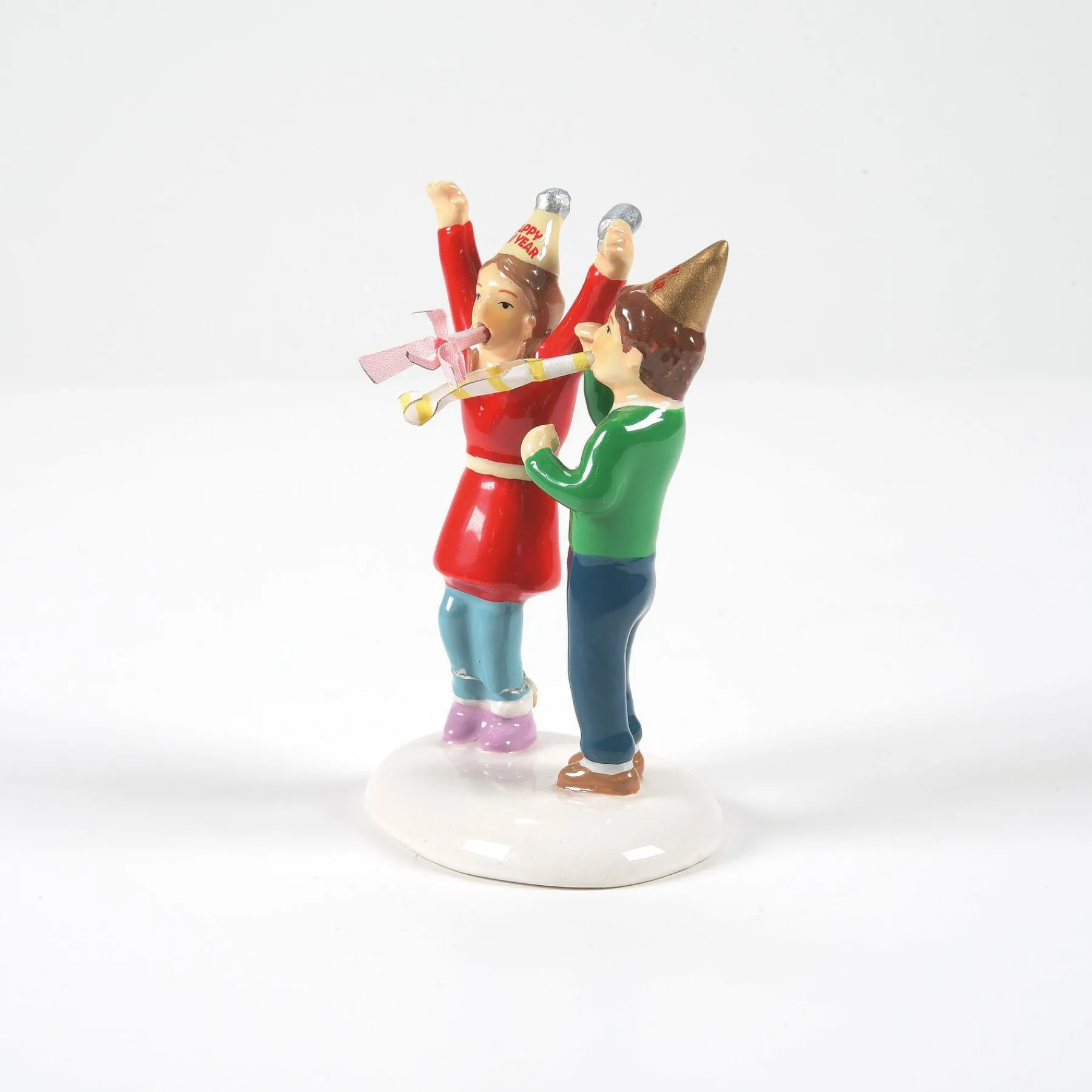Two excited children, with hats and horns are very proud they made it until midnight to celebrate the new year! This accessory accompanies Ready for New Year’s Eve.