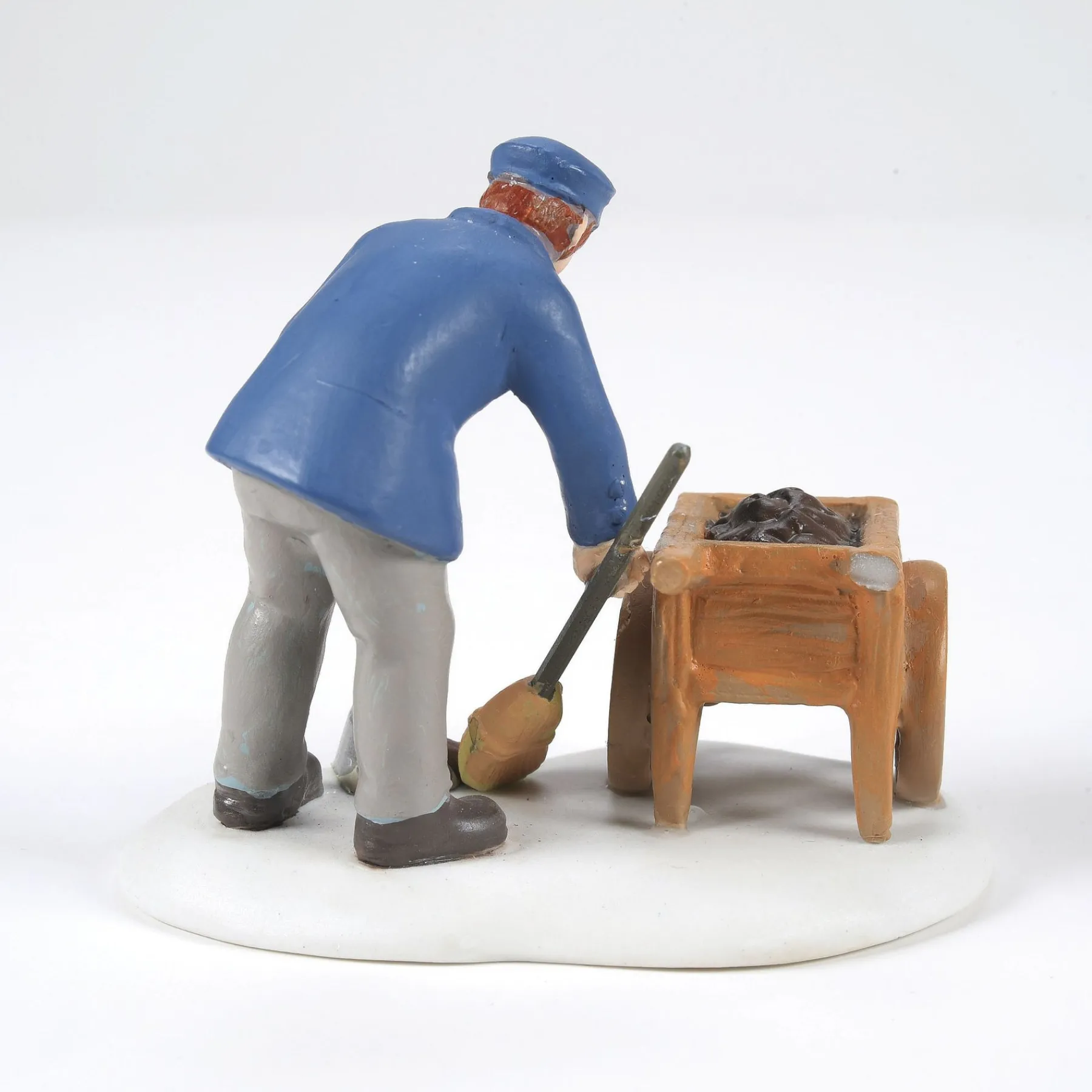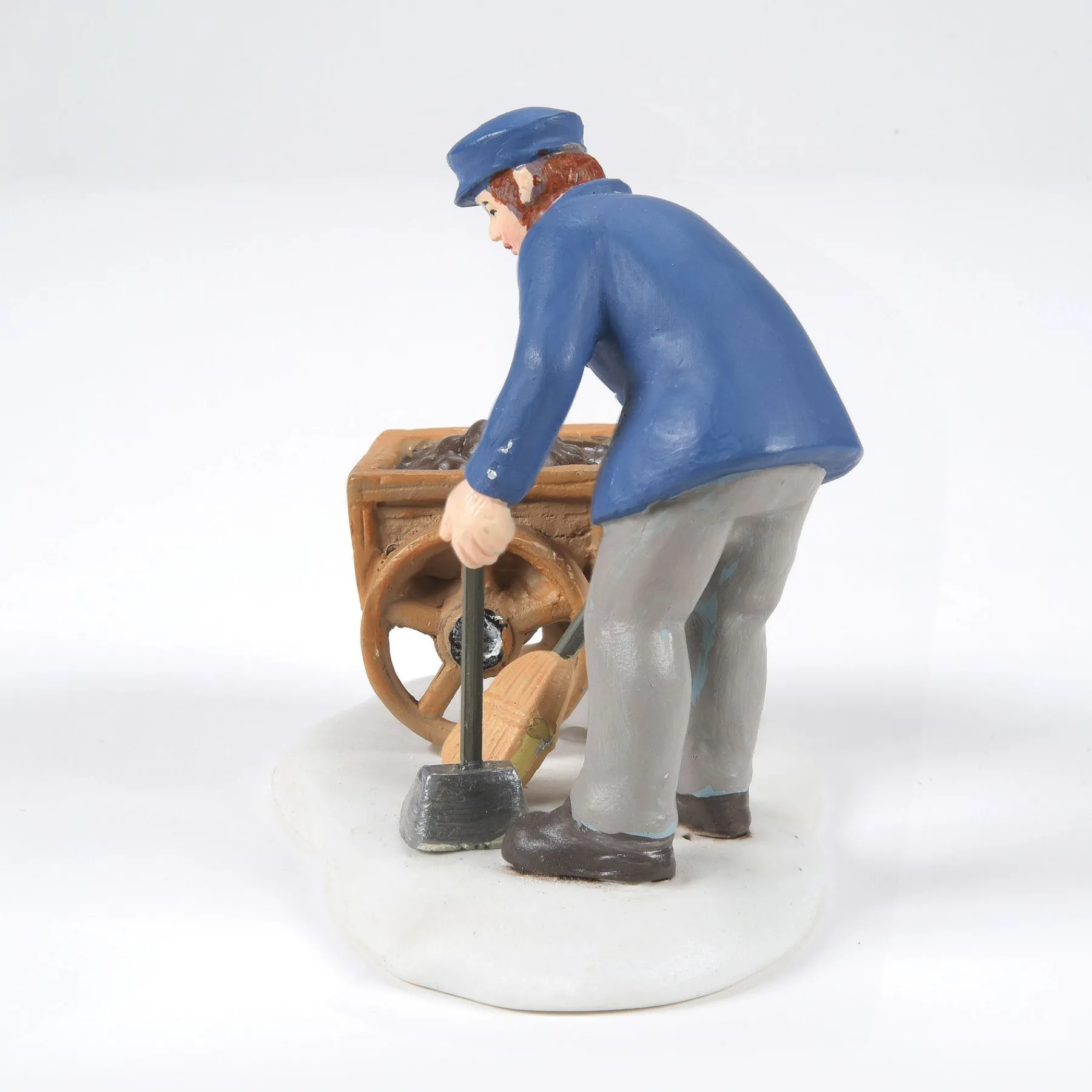One of the groundskeepers is sweeping up in preparation of opening. He uses a handcart and broom to keep things neat and tidy.
