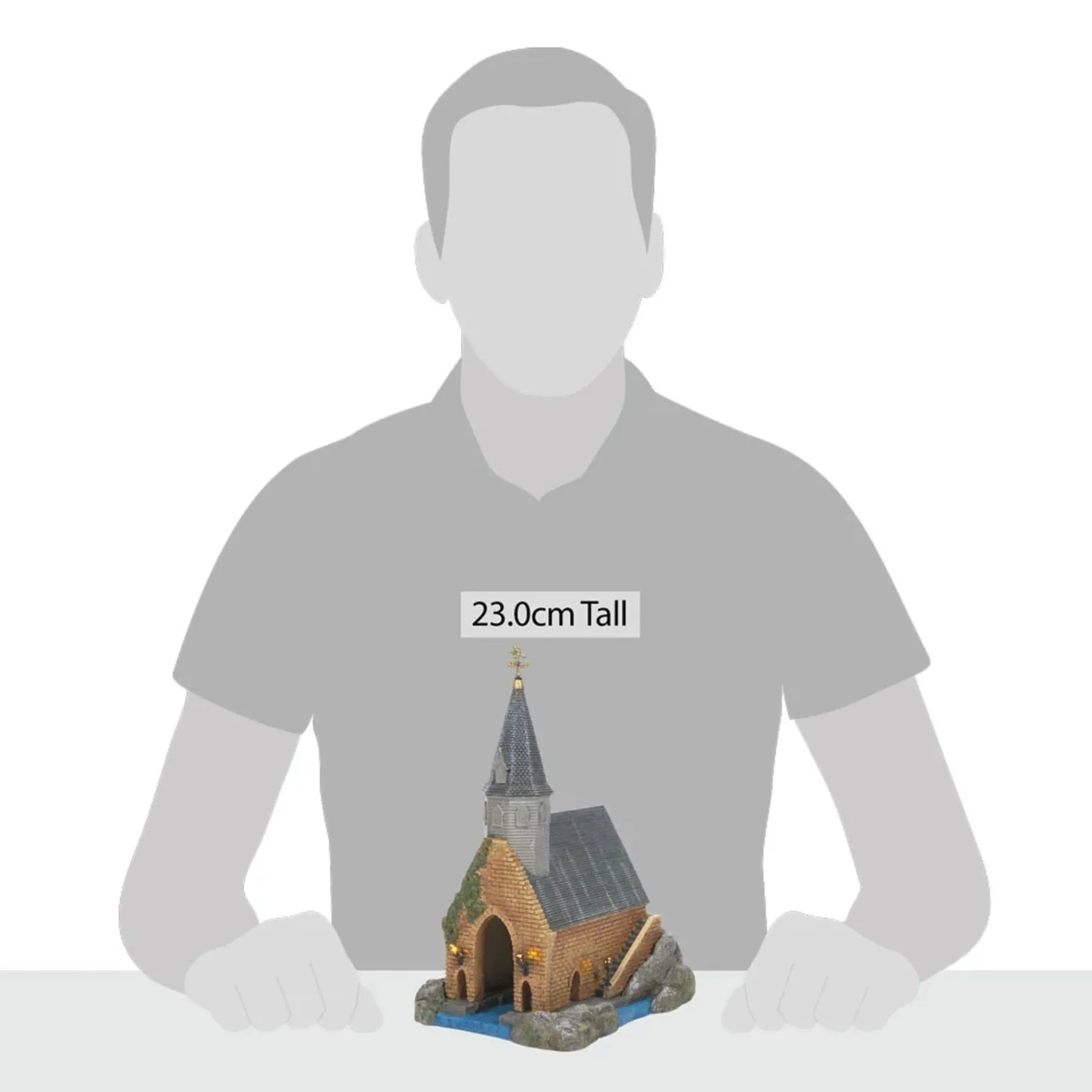 - Hand crafted and hand painted resin lit building.