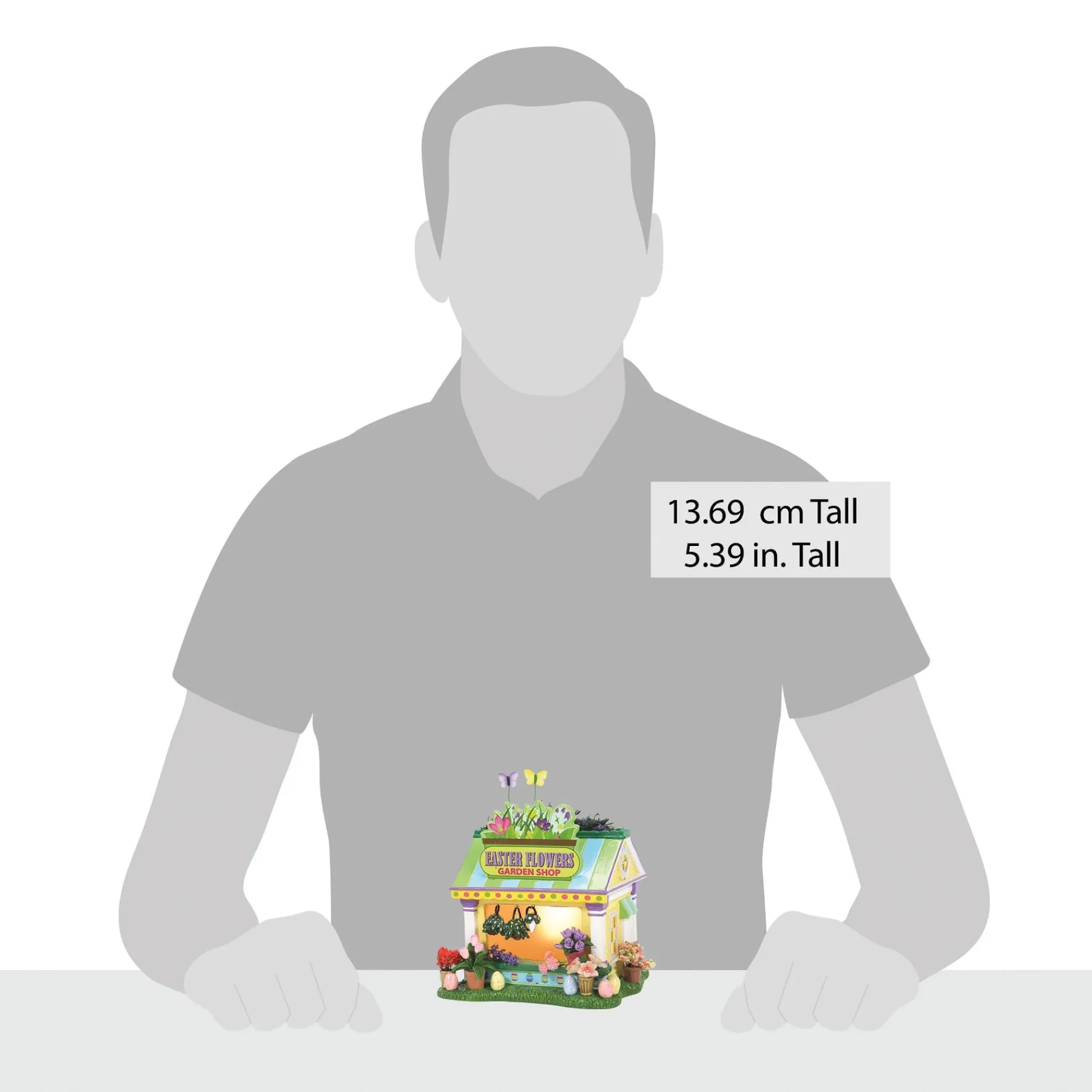 Signs of spring are popping up all around, & there’s much more to decorate than just the eggs! Hop on over to visit the Easter Flowers Garden Shop for an arrangement of lilies, tulips, and daffodils. Set includes the lit Garden Shop & adorable shopper.