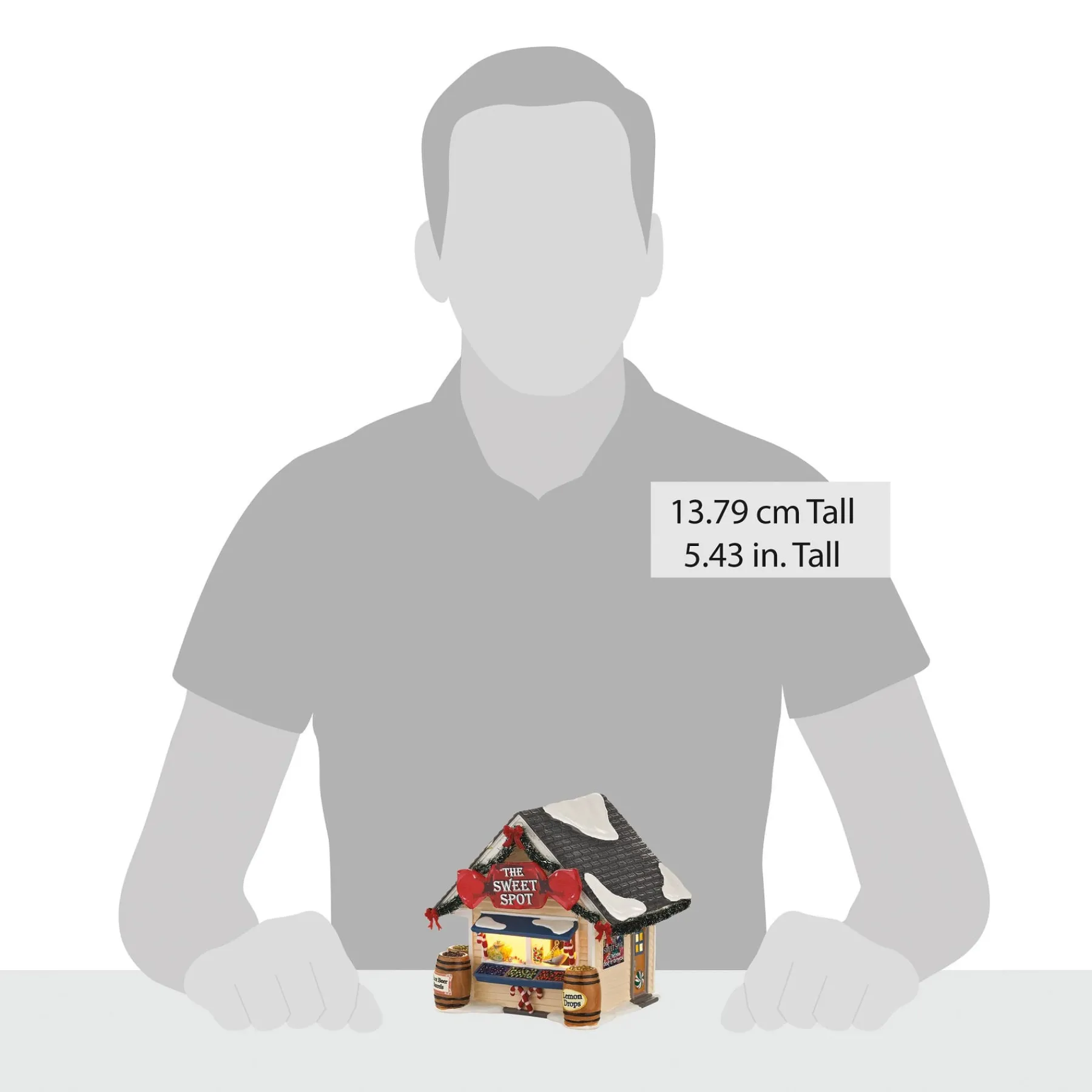 Stop at the Sweet Spot to fill your sweet spot — this booth at the Farmer’s Market is always filled with homemade candies and other treats. The piece is hand-crafted and hand-painted ceramic lit building.